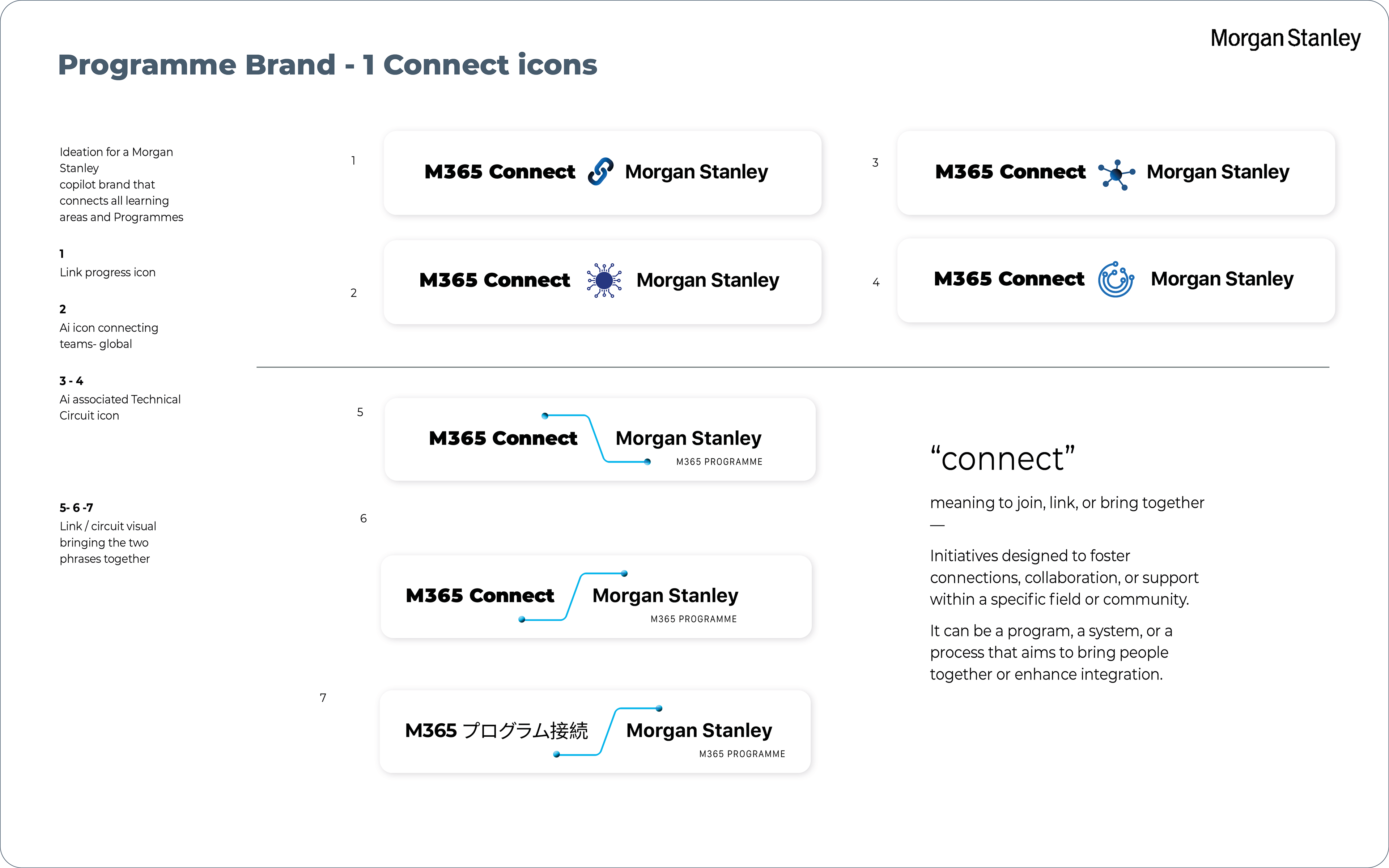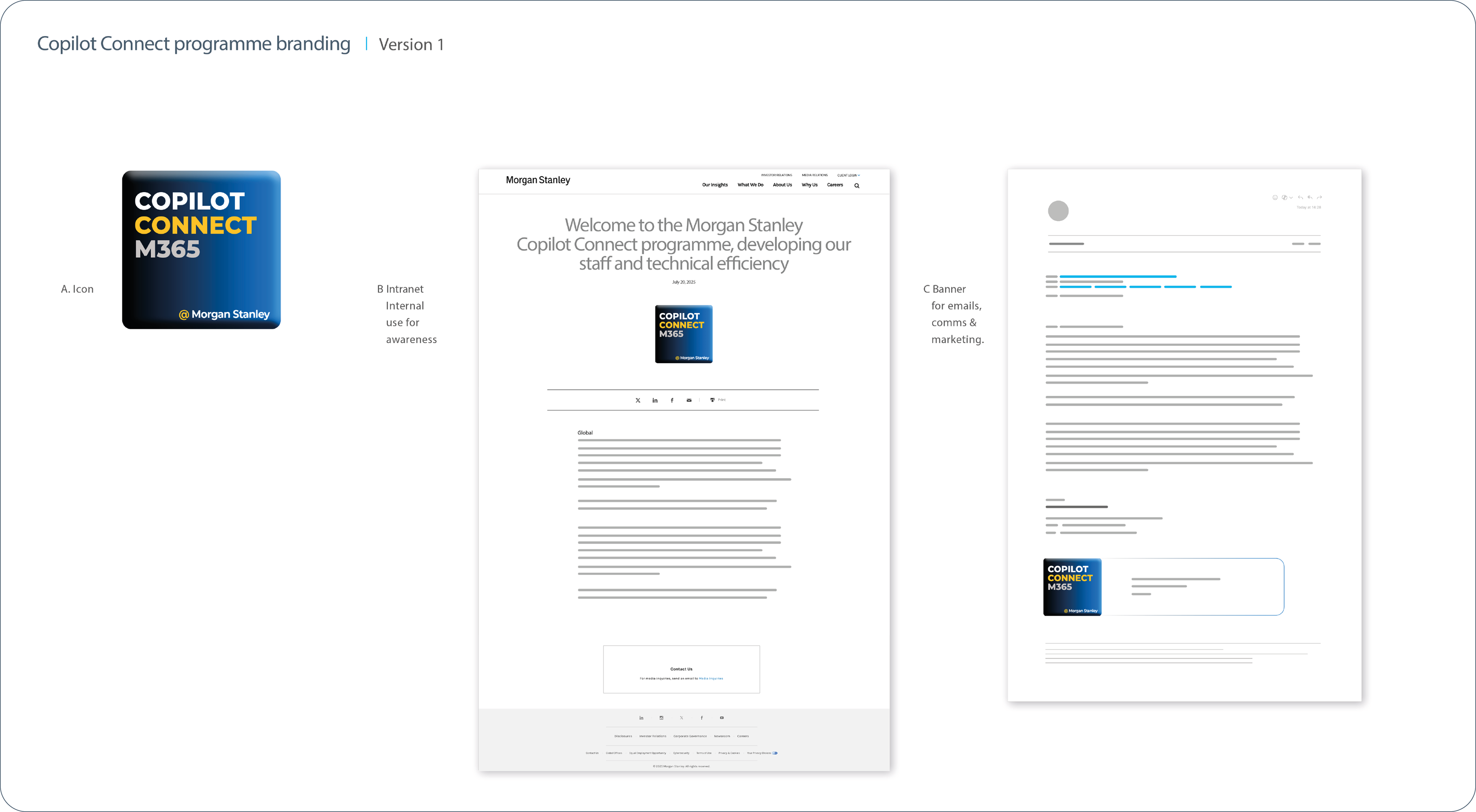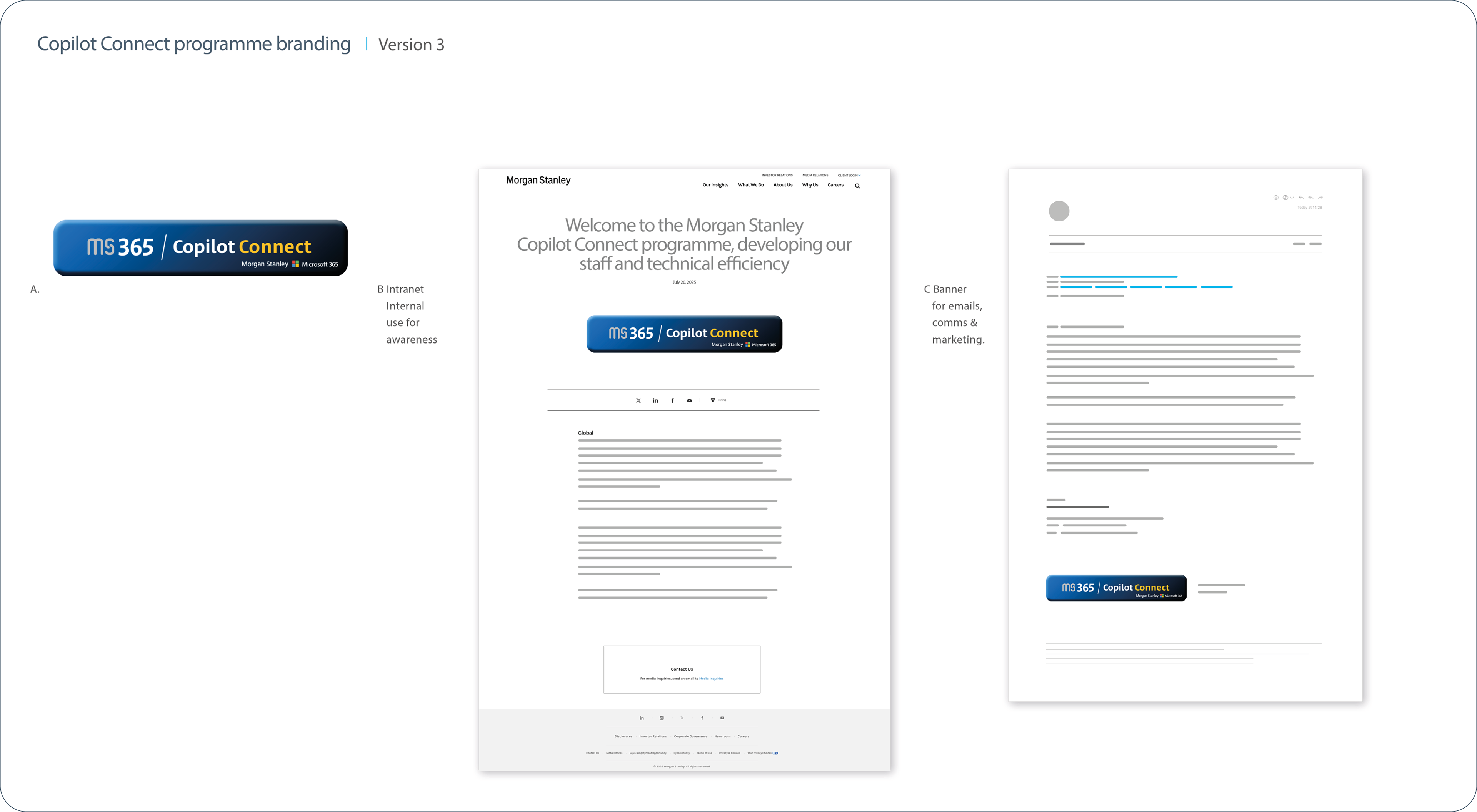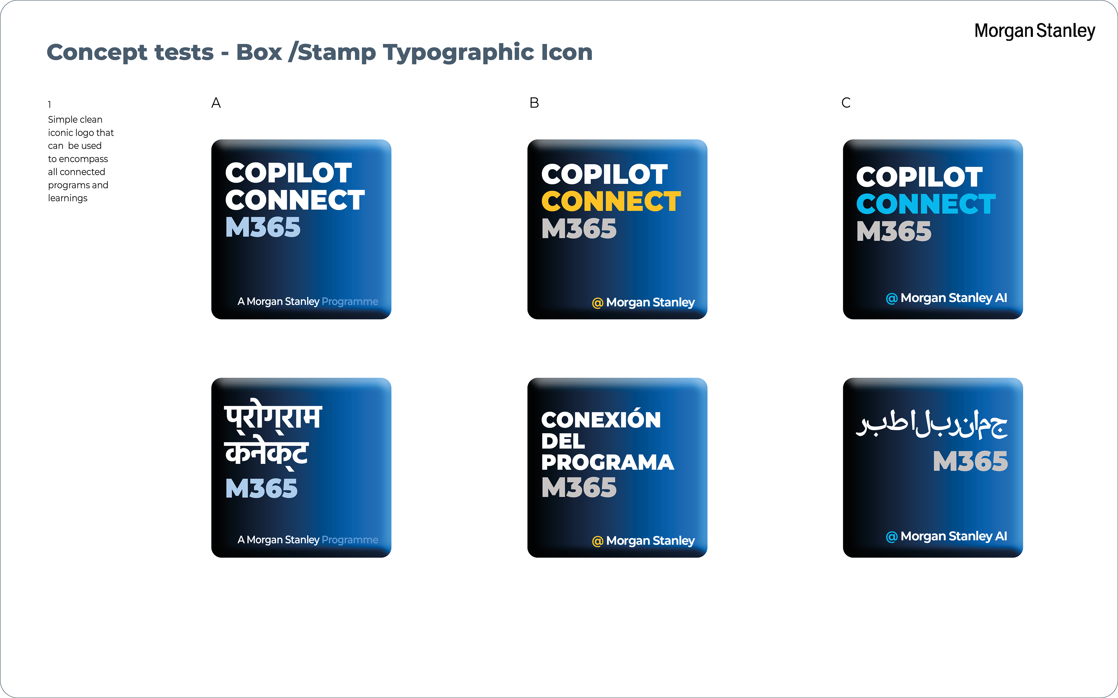 Created the final brand identity for Morgan Stanley Copilot by integrating Microsoft iconography with a distinctive visual lozenge design.