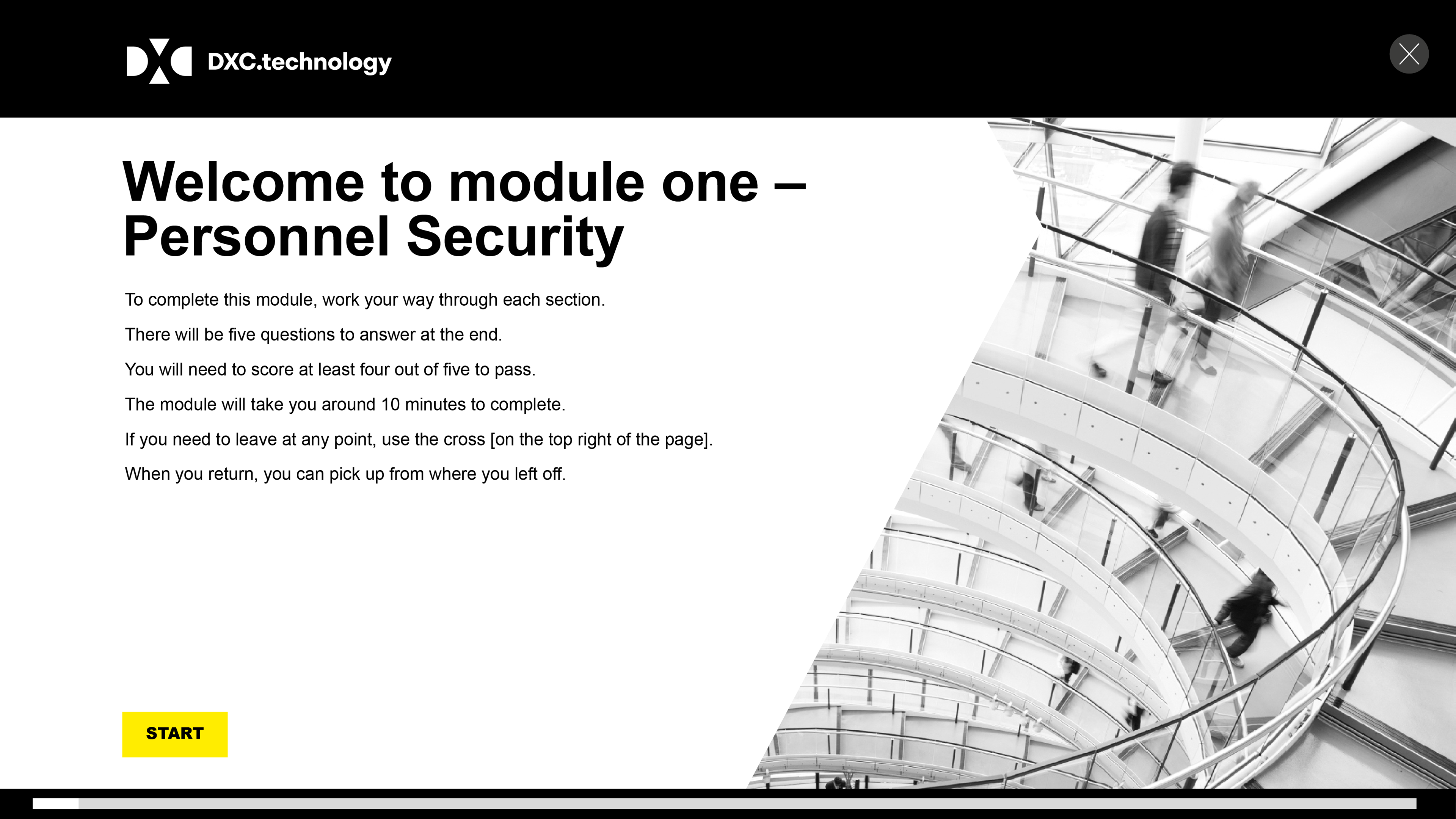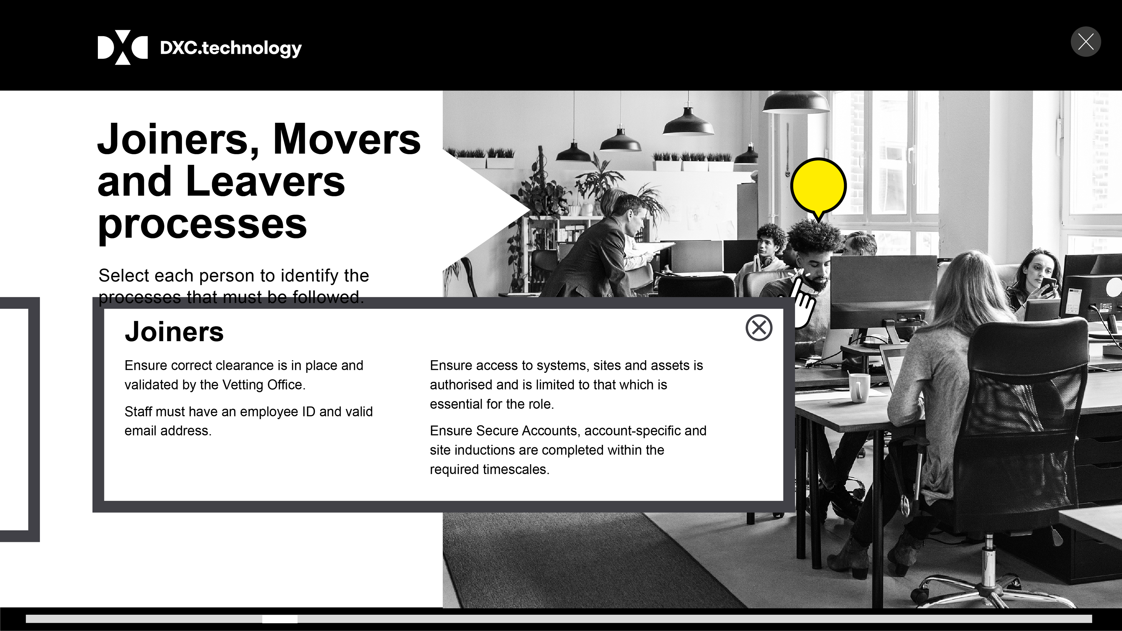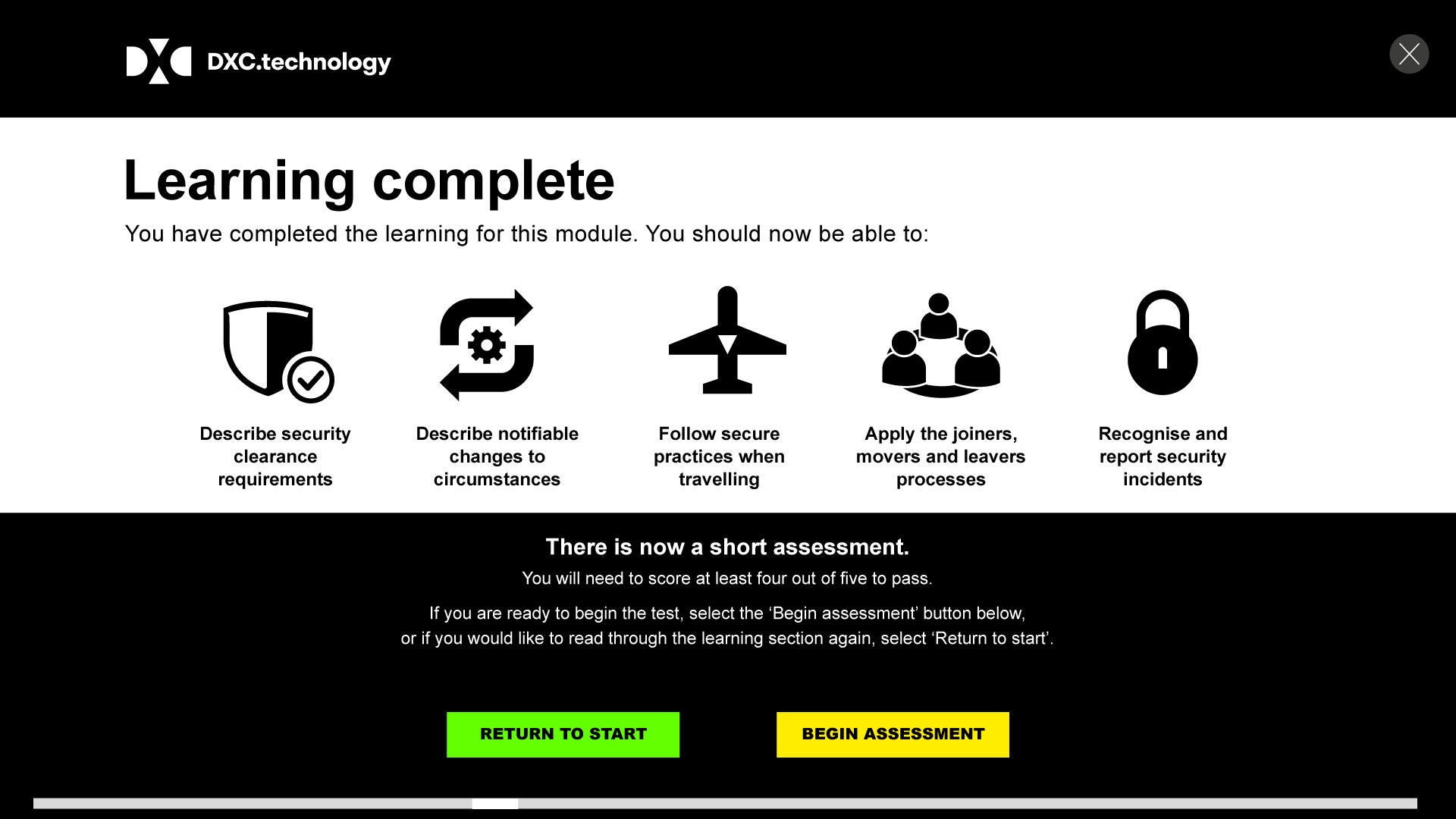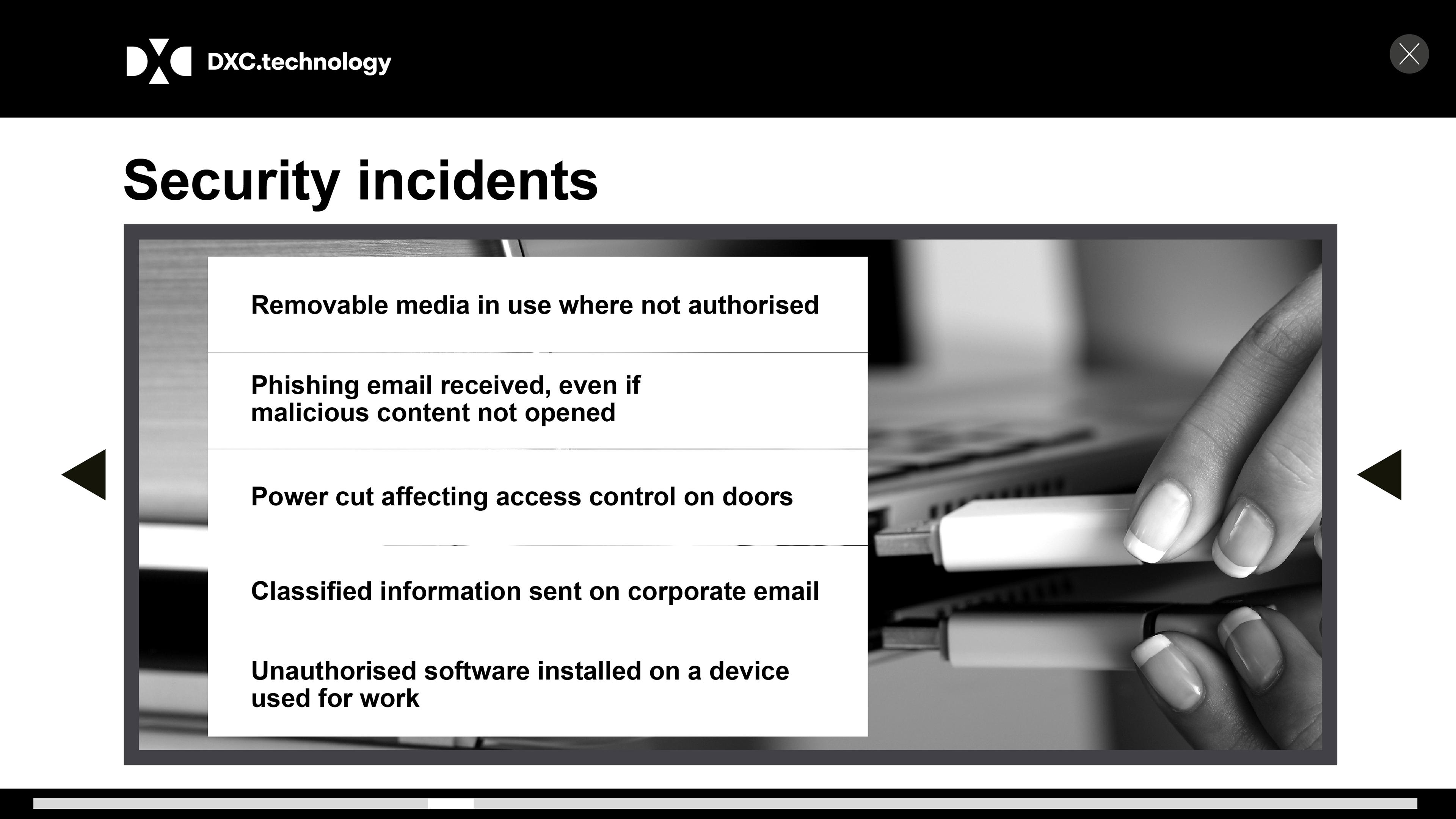 Technology training programme was split into three sectors, ranging from new staff processes to changes in circumstances, and everyday security risks and incidents.