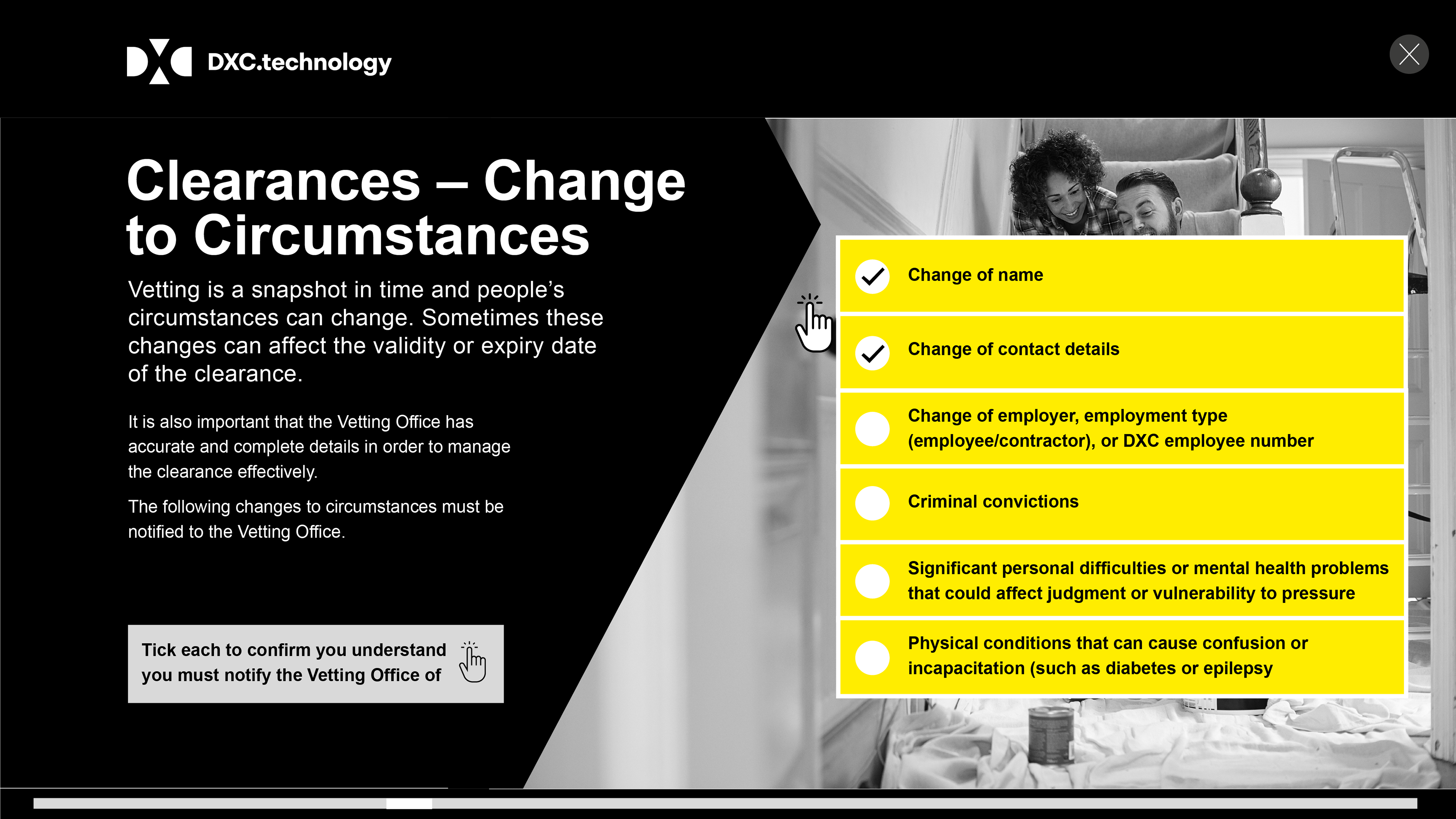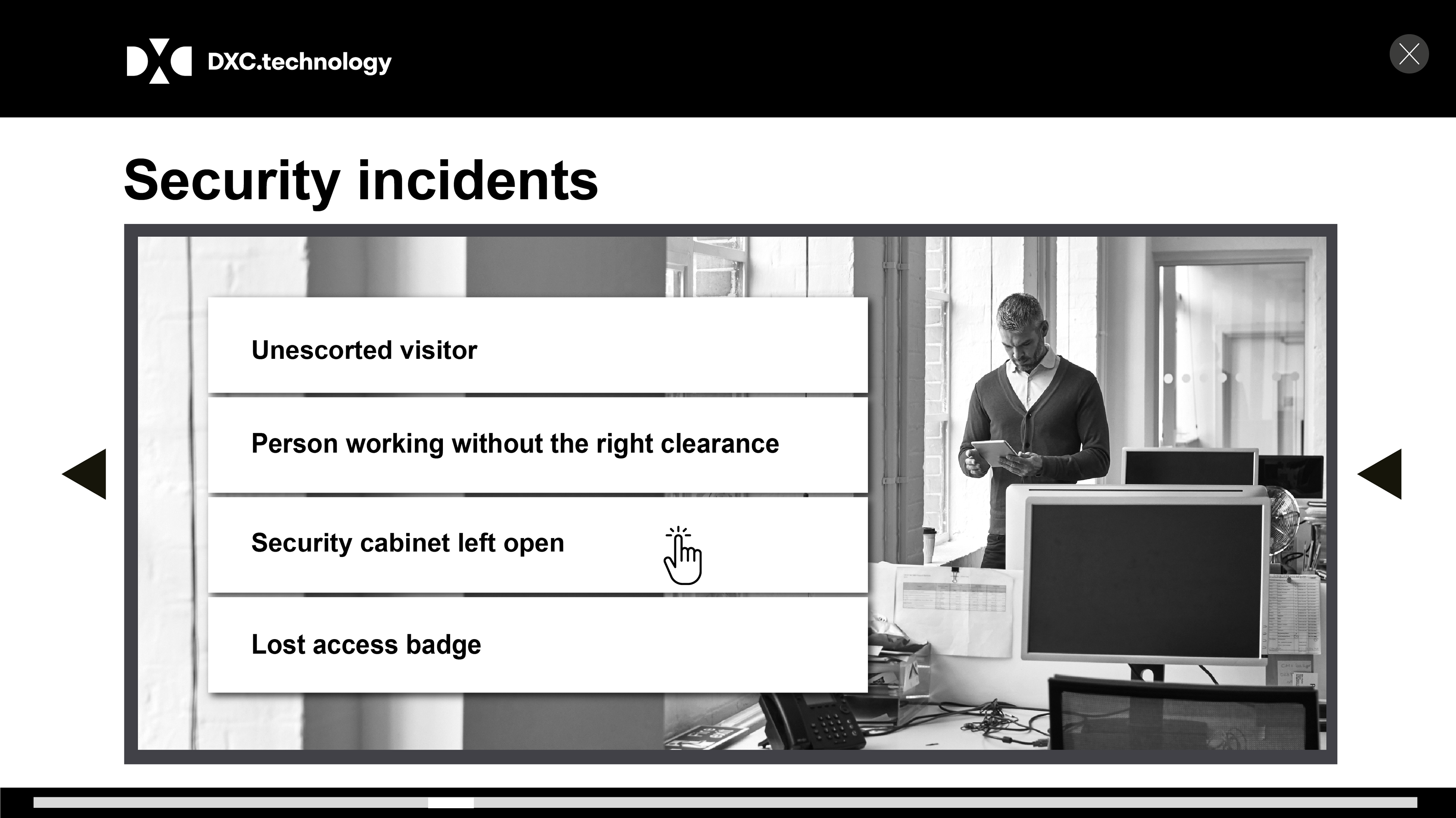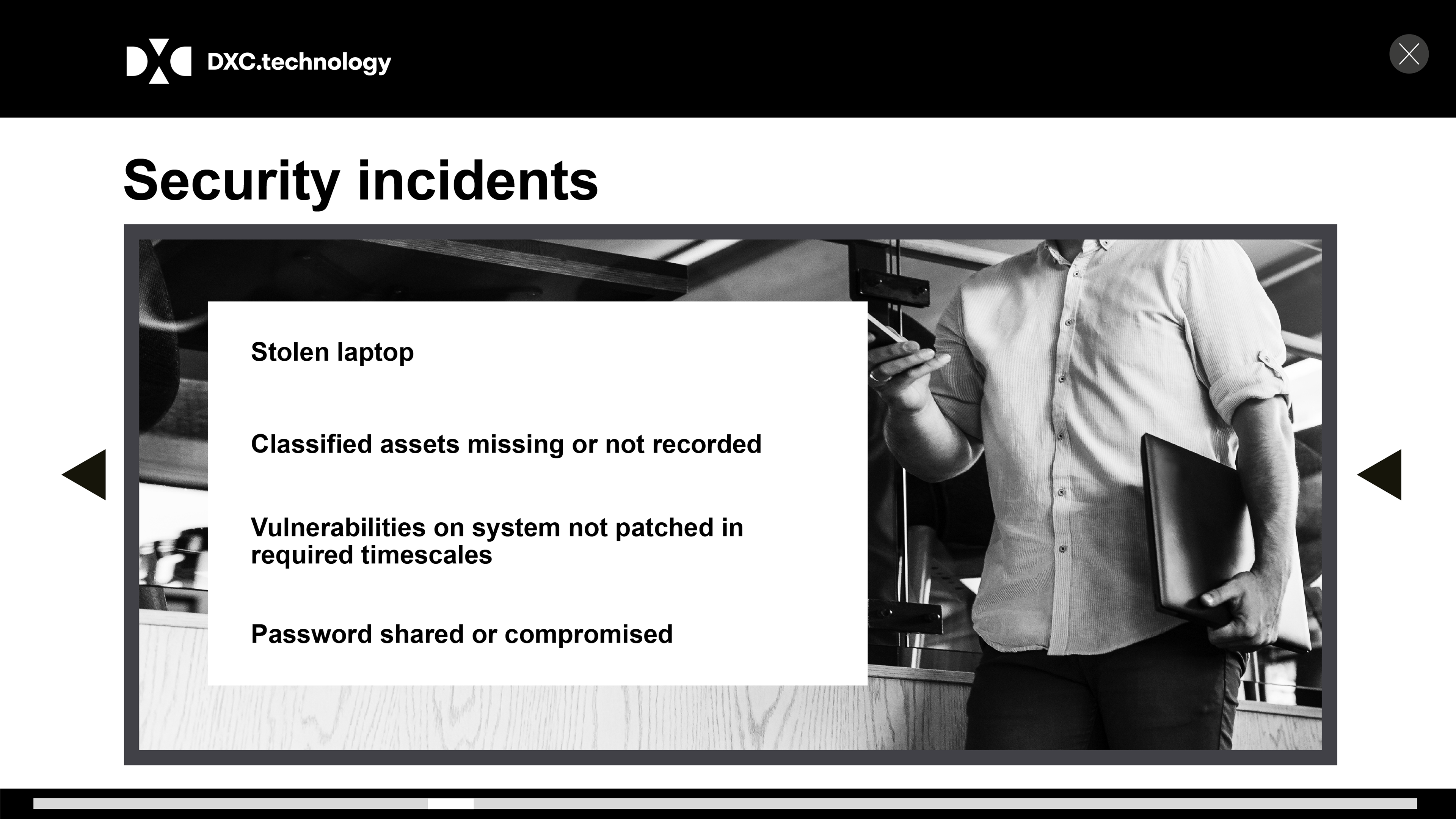 Technology training programme was split into three sectors, ranging from new staff processes to changes in circumstances, and everyday security risks and incidents.