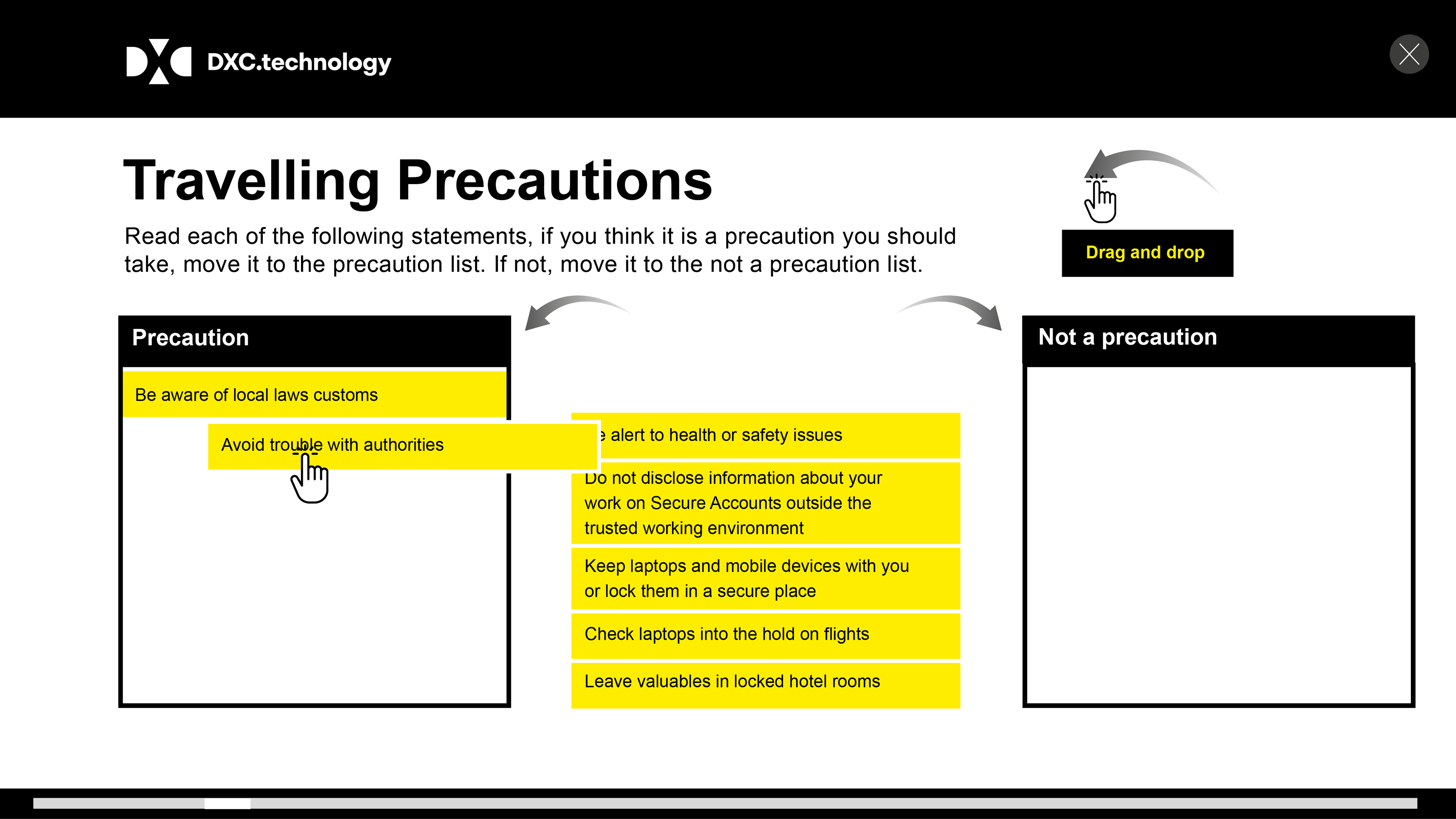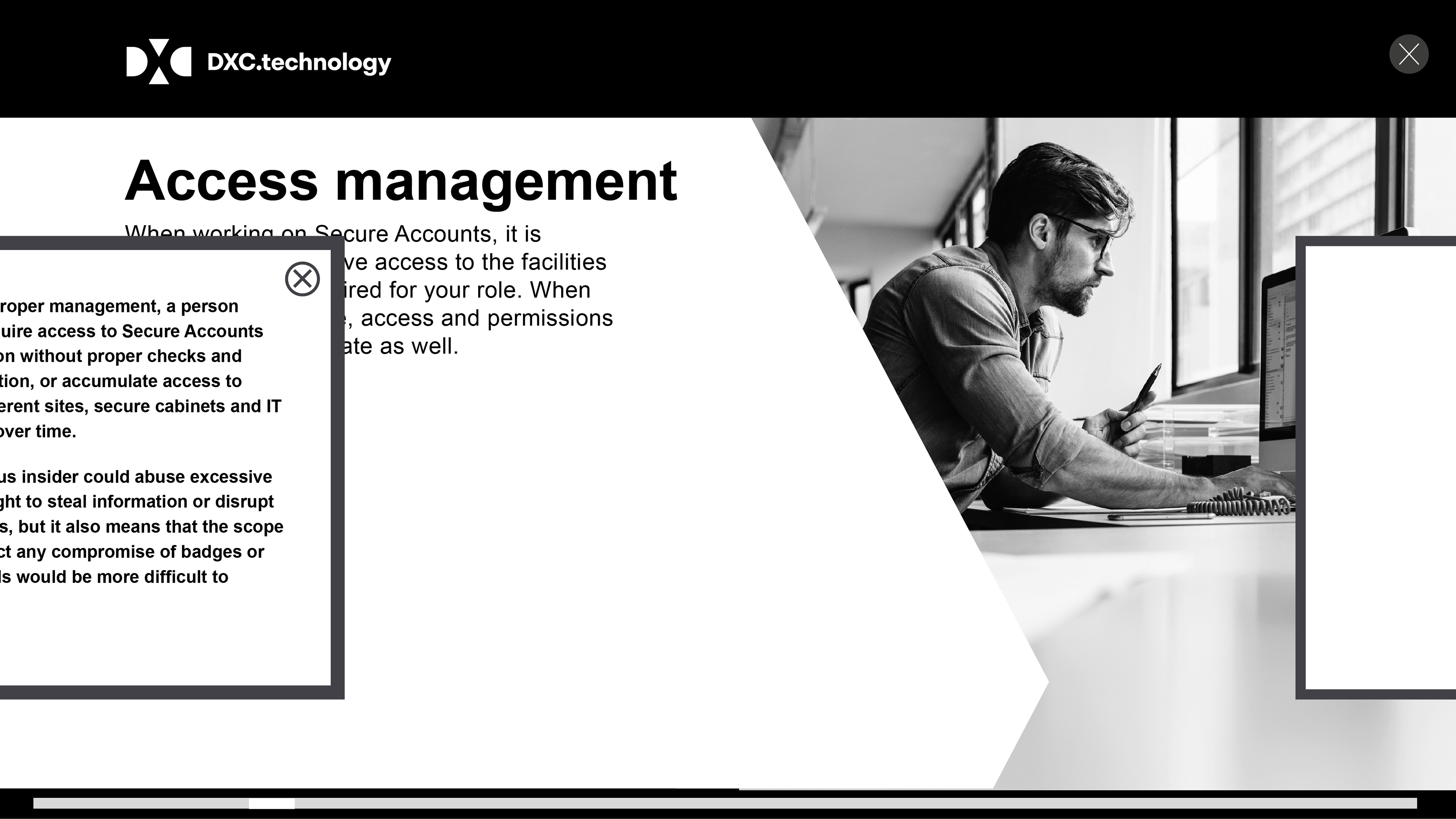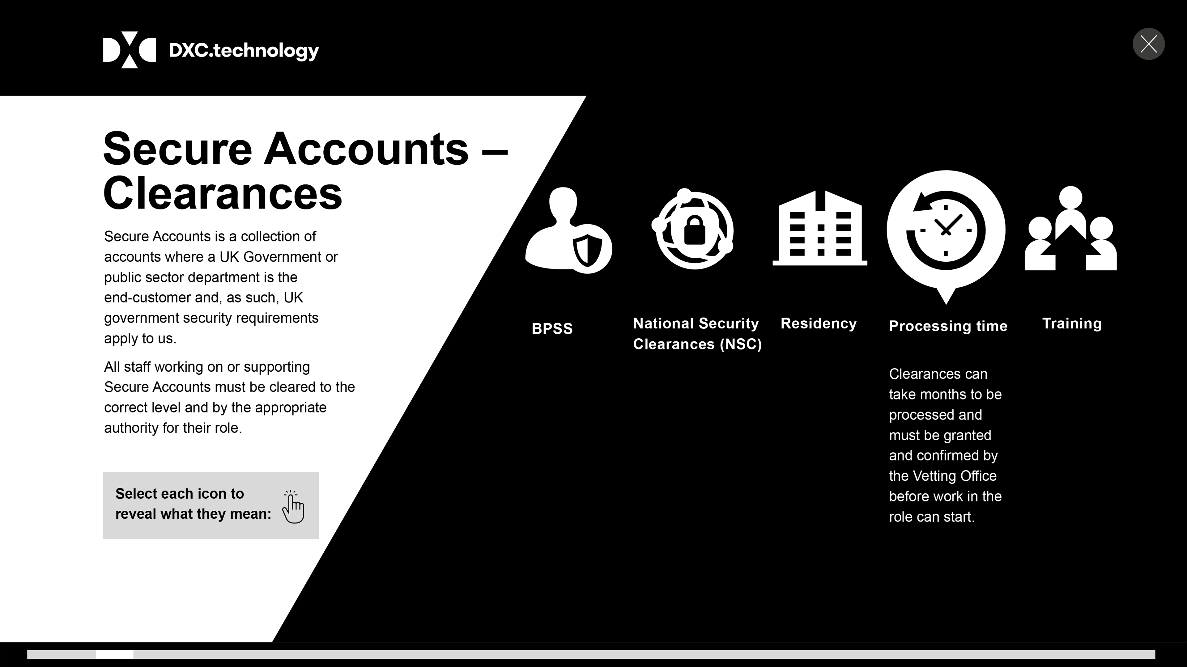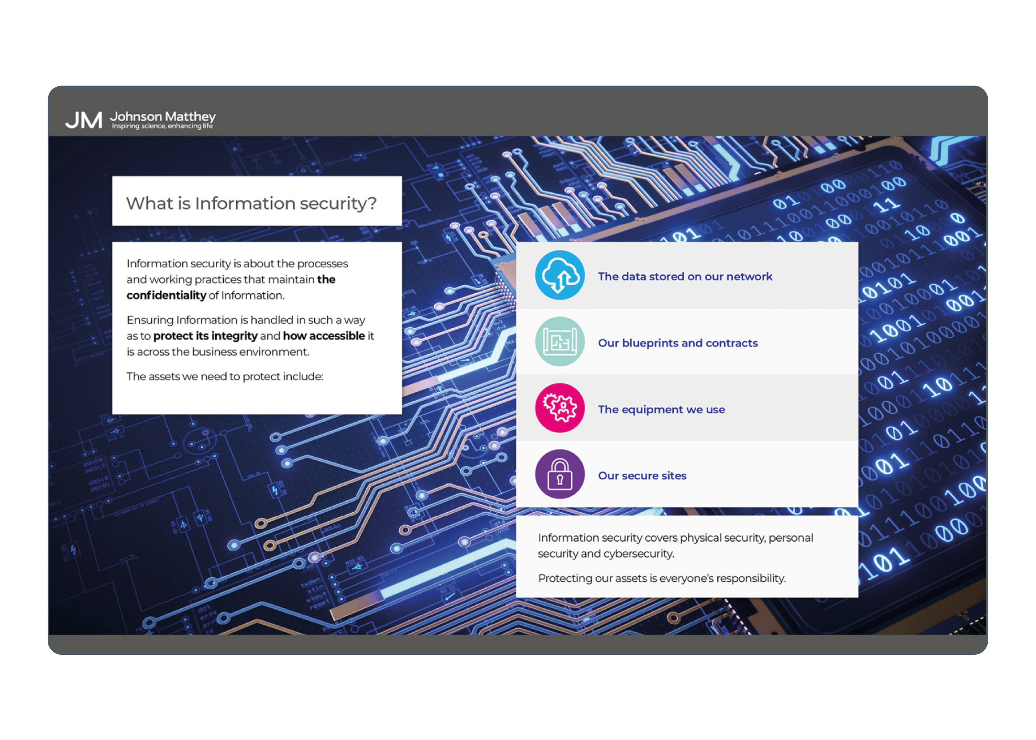 Technology training programme was split into three sectors, ranging from new staff processes to changes in circumstances, and everyday security risks and incidents.