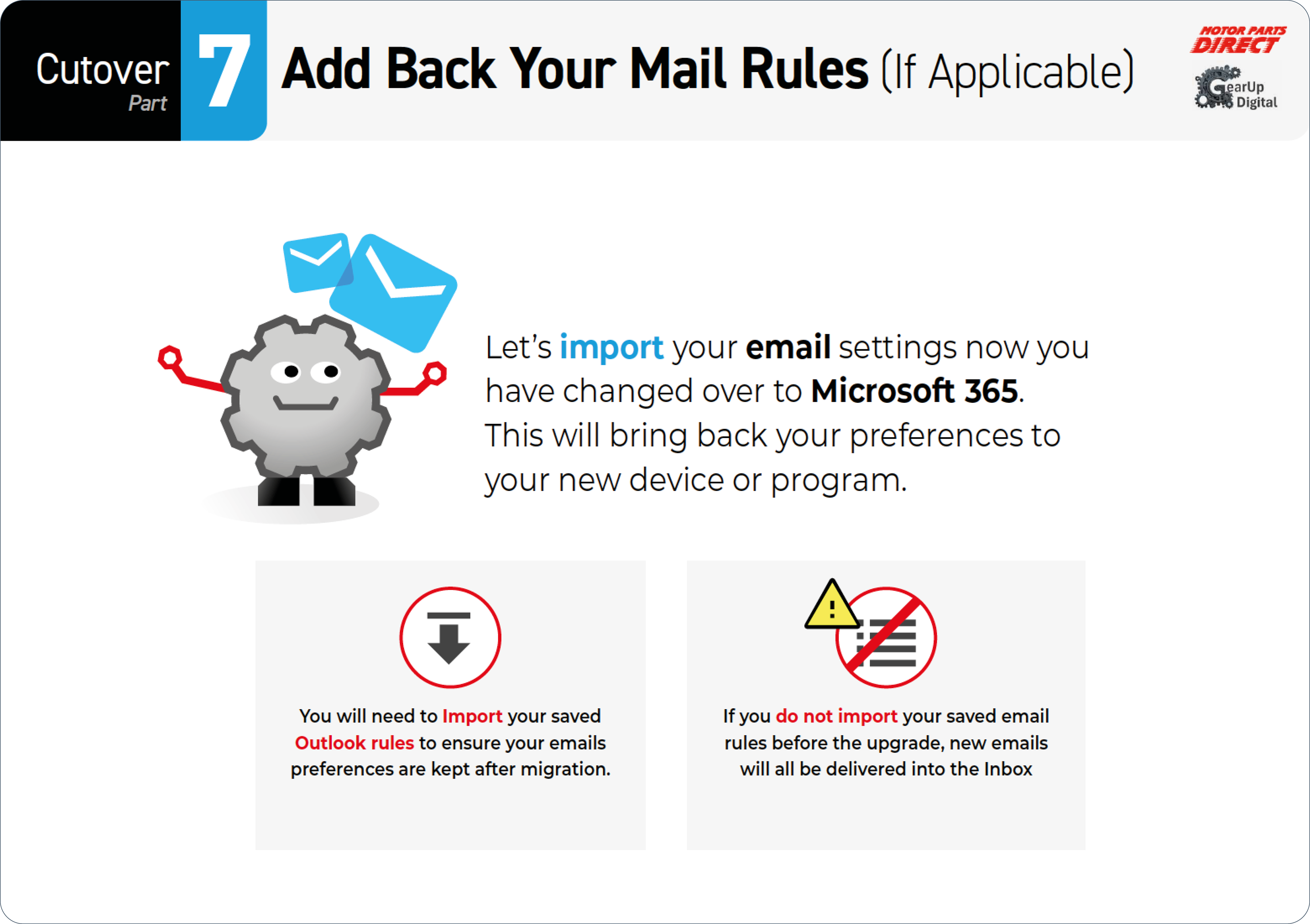 National Motor Parts Direct, a Major UK supplier, required enterprise-wide migration from legacy systems to M365, affecting non-technical workforce accustomed to varied legacy Windows environments and outdated software versions.