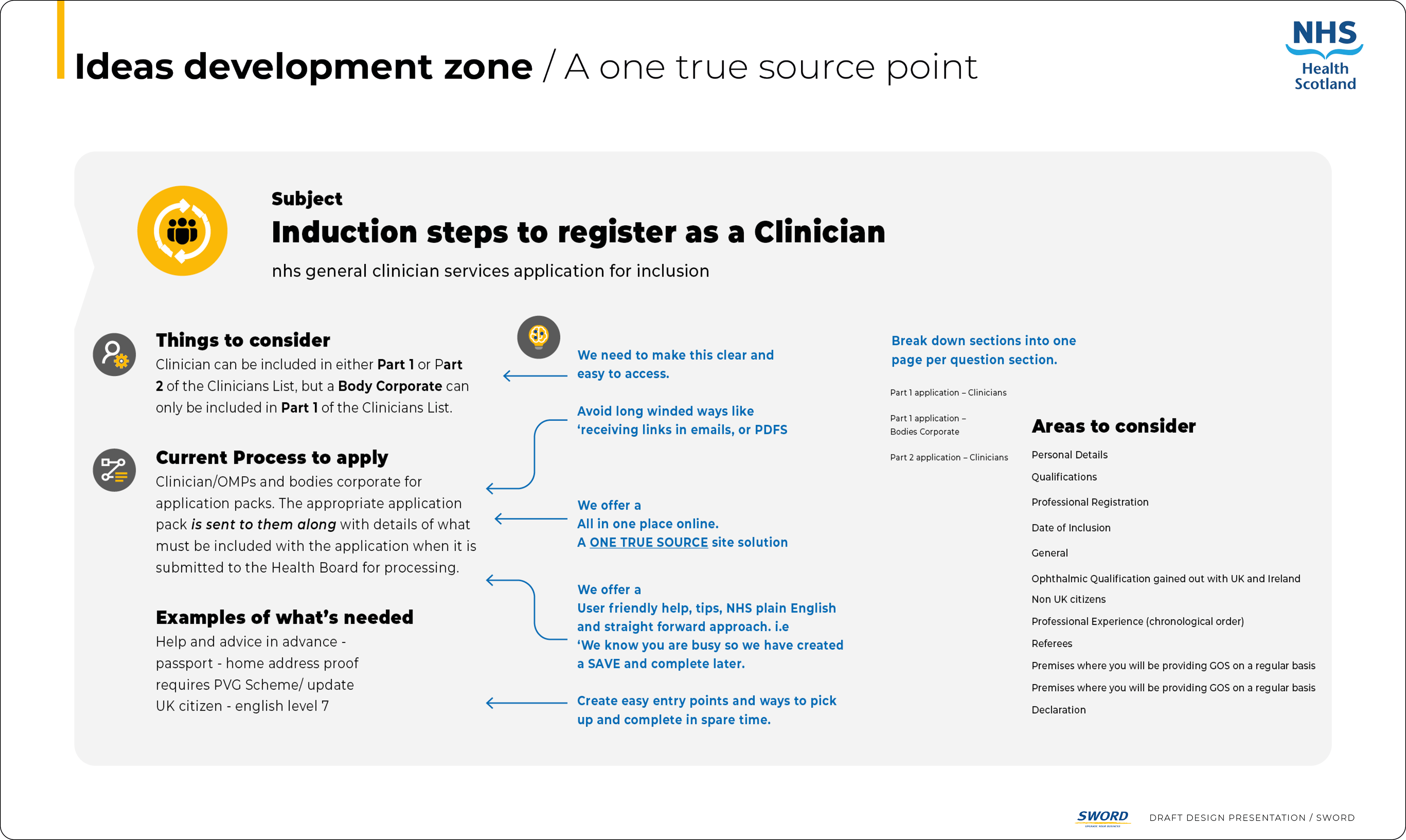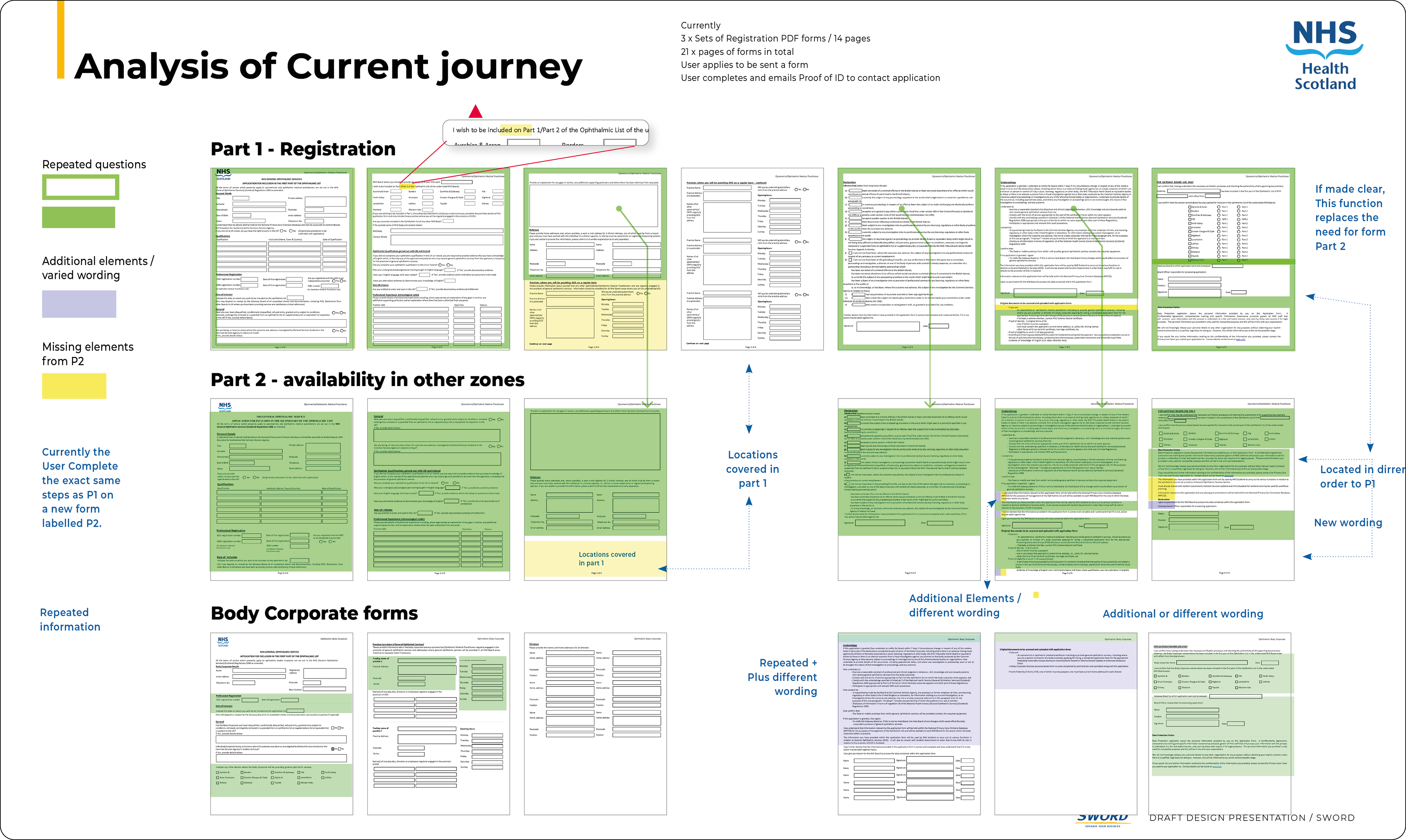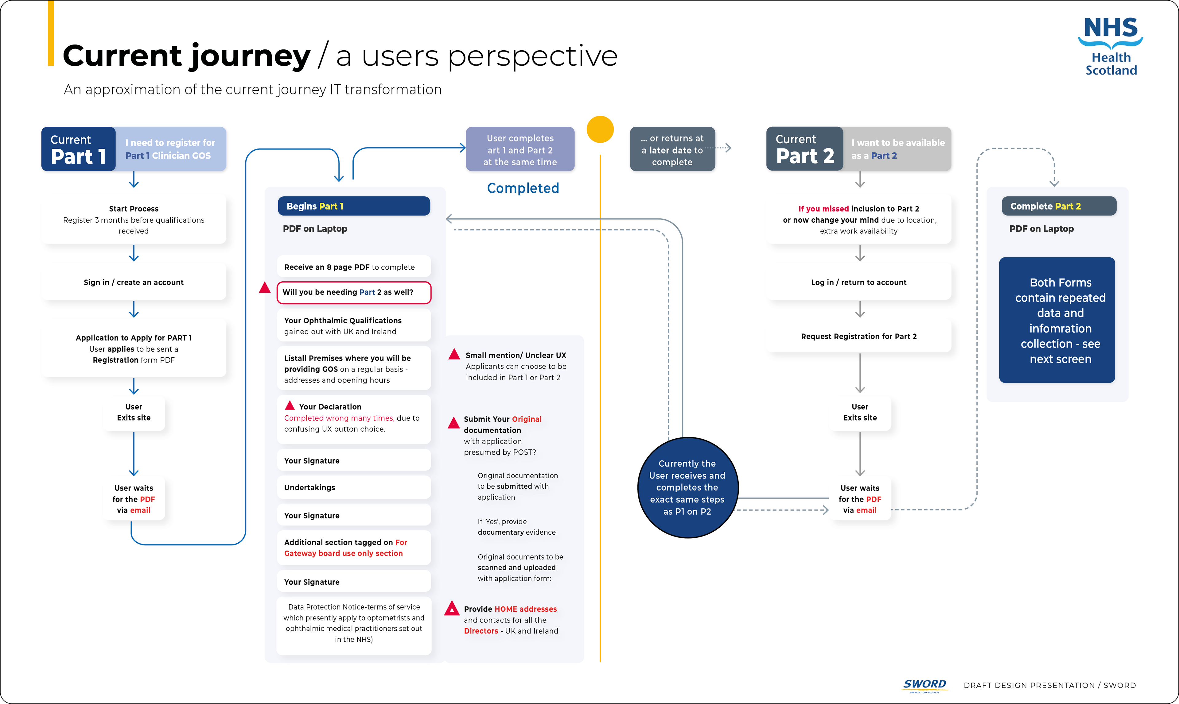 Redesigned a complex legacy system using GDS principles. Eliminated redundant PDF forms and repetitive data entry through red-line analysis, reducing completion time and improving user experience.