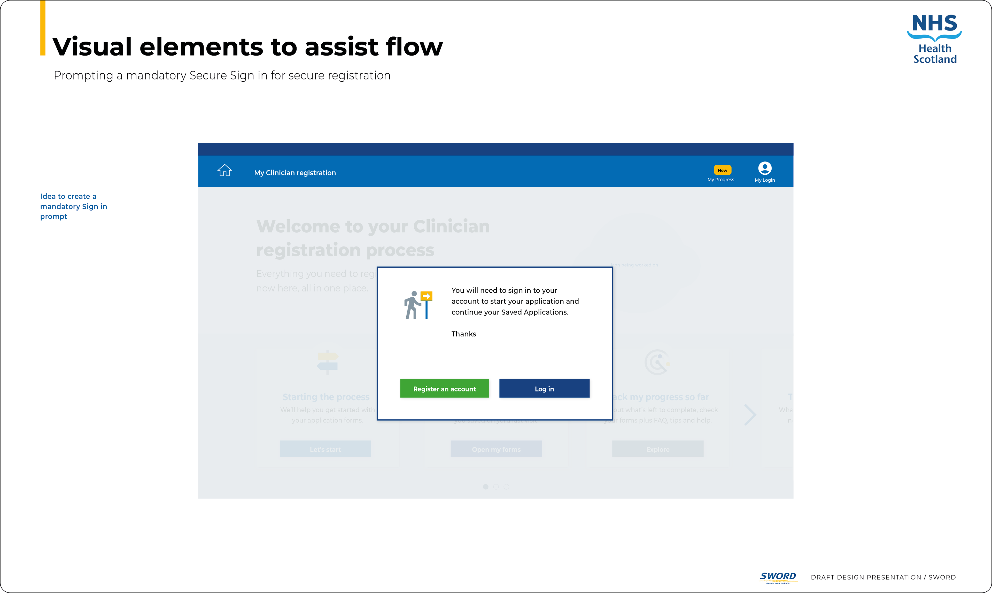Applied GDS principles to transform complex onboarding into intuitive, accessible user journeys. Balanced security with user experience via streamlined sign-in flows and visual roadmaps, reducing cognitive load at each step. This approach improved completion rates while maintaining strict data protection and security standards.