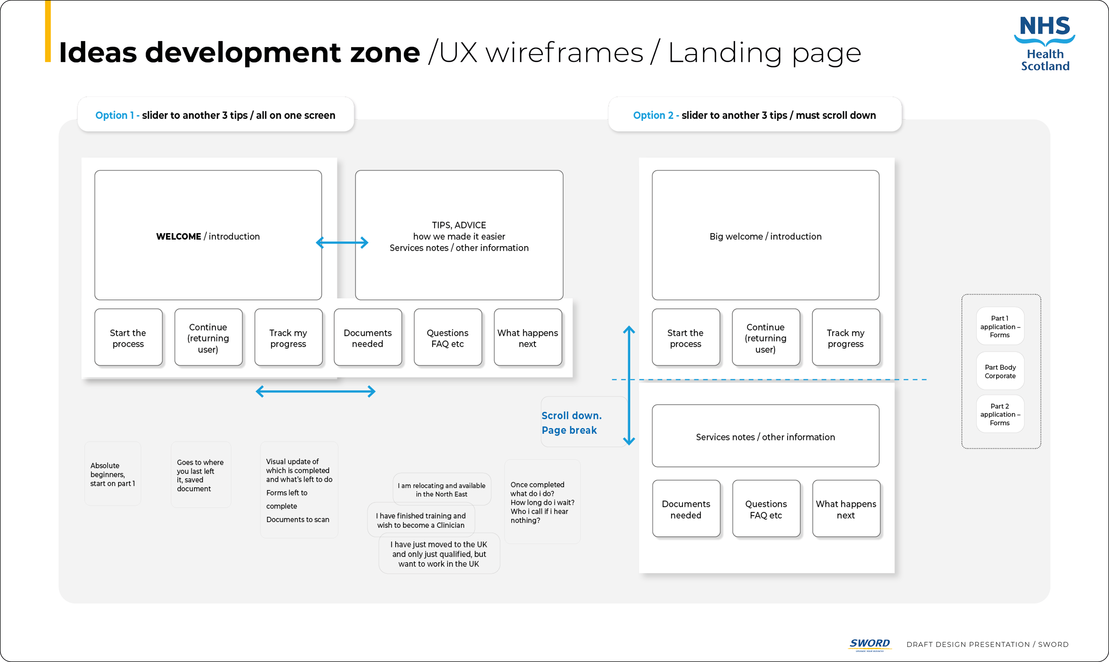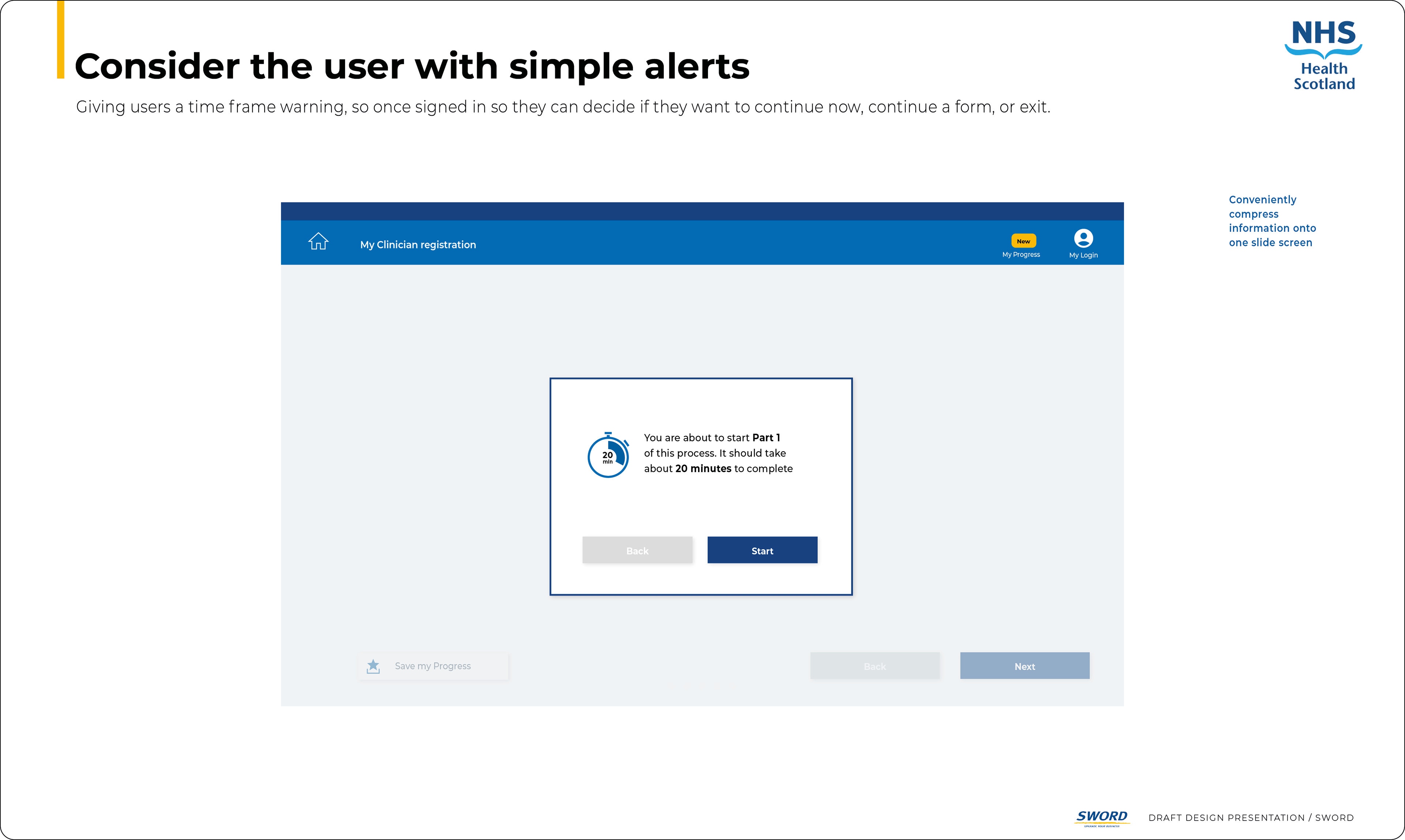 Analysis revealed redundancies in the existing two-part process. I applied GDS principles, plain English, and user-centred design to create a clean, intuitive experience—adding duration indicators and a facts glossary for clarity and accessibility.