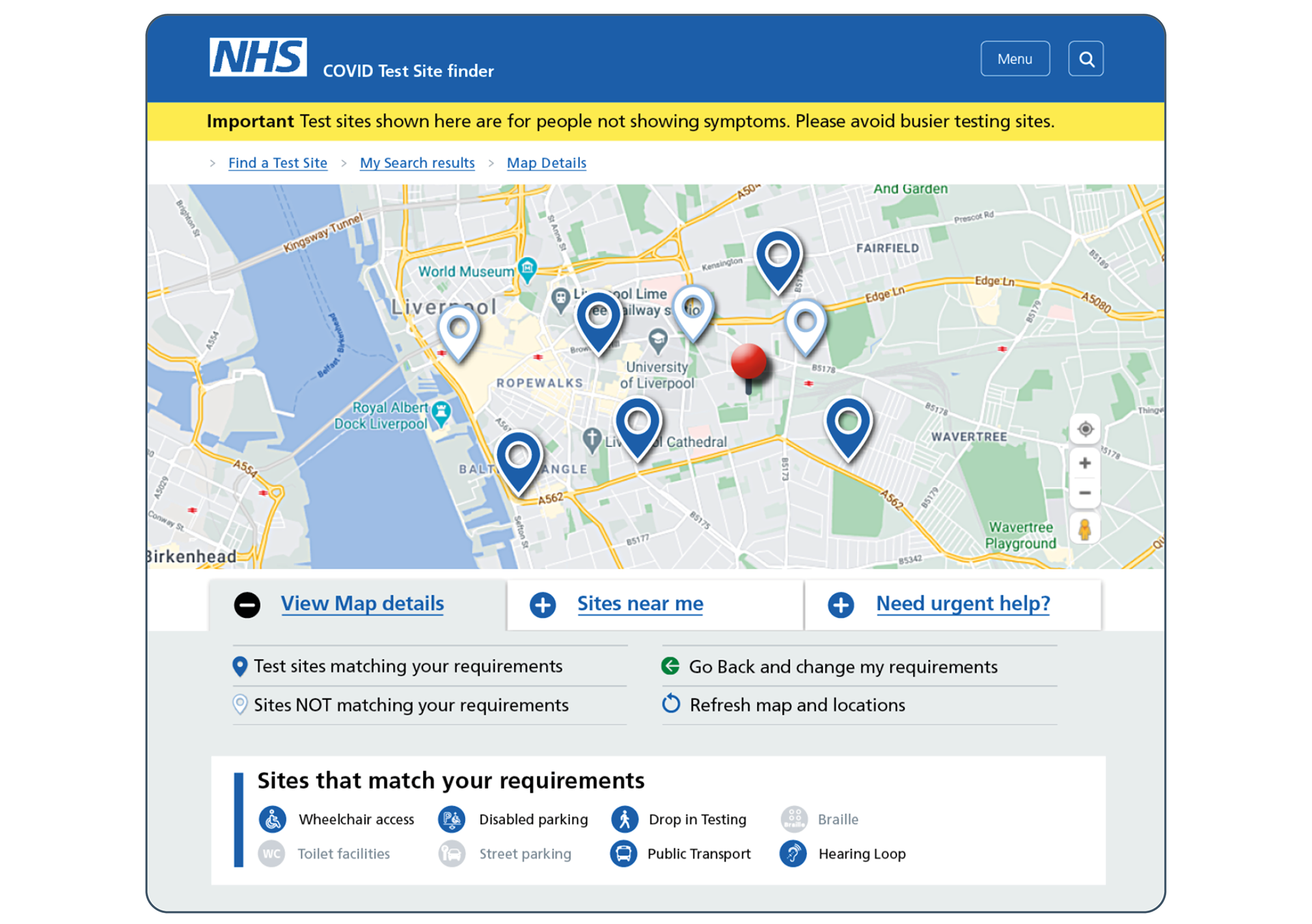 Users experienced significant difficulty locating nearby test centres within the existing system, resulting in poor user satisfaction and abandoned journeys.