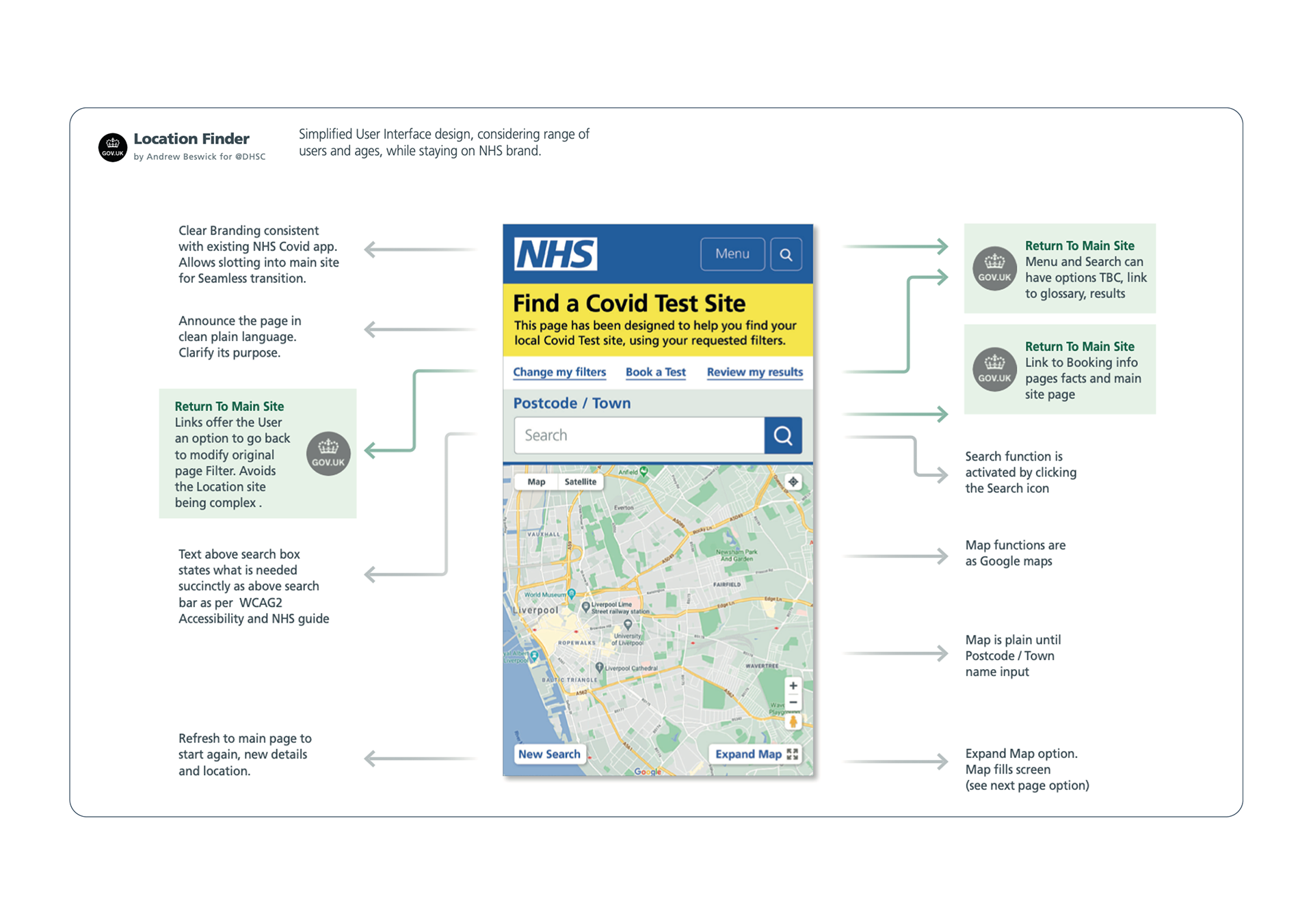 A significantly improved user experience delivering faster search results and seamless navigation. The redesigned system reduced user effort, increased successful centre location completions, and received stakeholder approval across multiple government departments for its clarity and effectiveness.